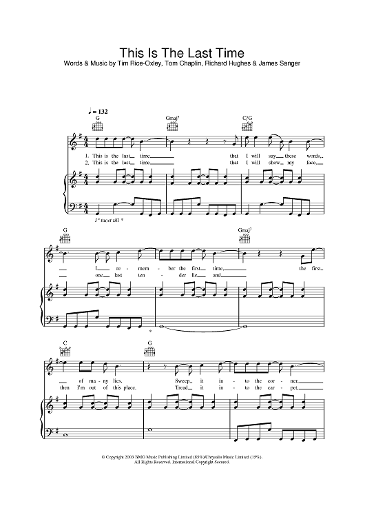 Digital Sheet Music for This Is The Last Time by Keane scored for Piano/Vocal/Chords; id:378166