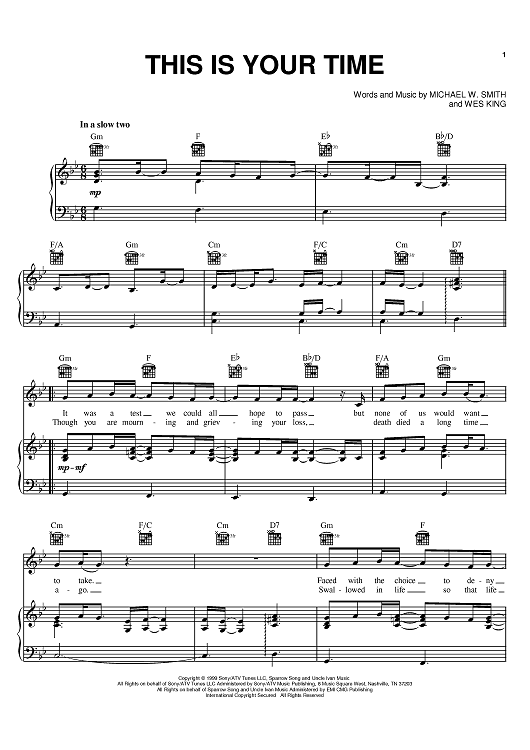 Digital Sheet Music for This Is Your Time by Michael W. Smith, Wes King scored for Piano/Vocal/Chords; id:395088