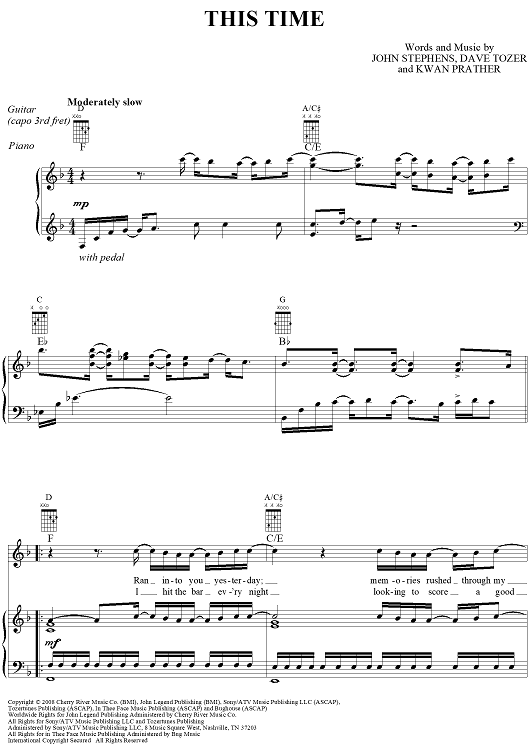 Digital Sheet Music for This Time by John Legend scored for Piano/Vocal/Chords; id:406774