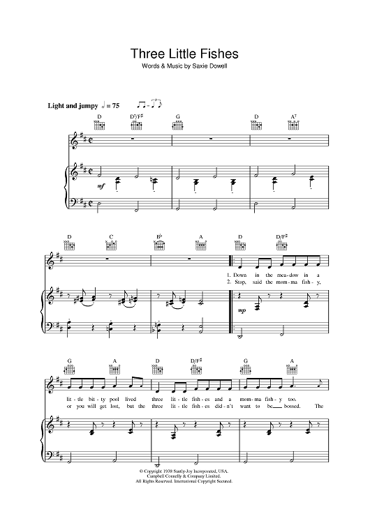 Digital Sheet Music for Three Little Fishes by Saxie Dowell scored for Piano/Vocal/Chords; id:394460