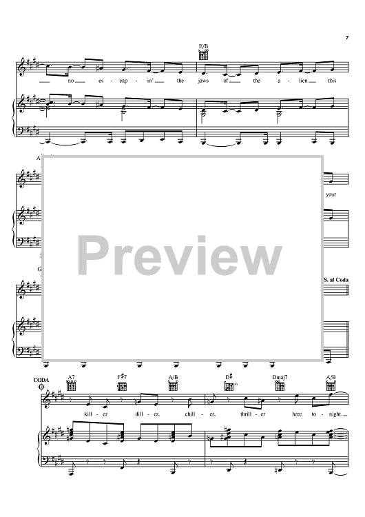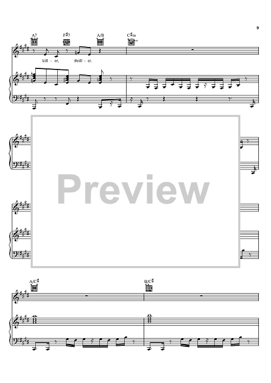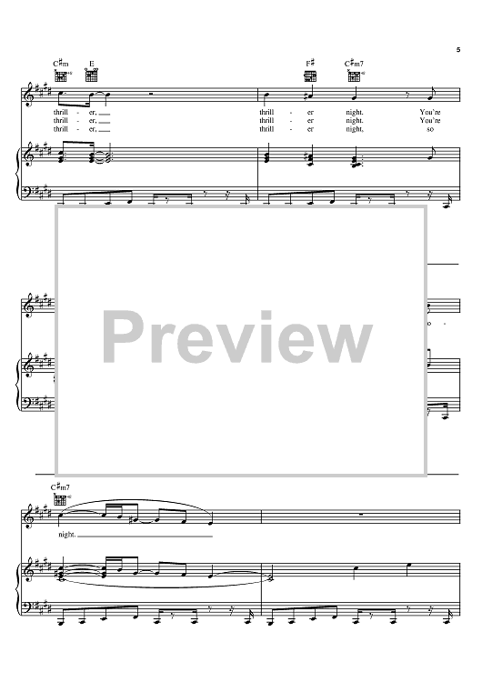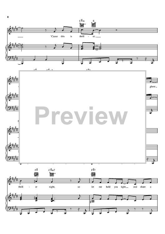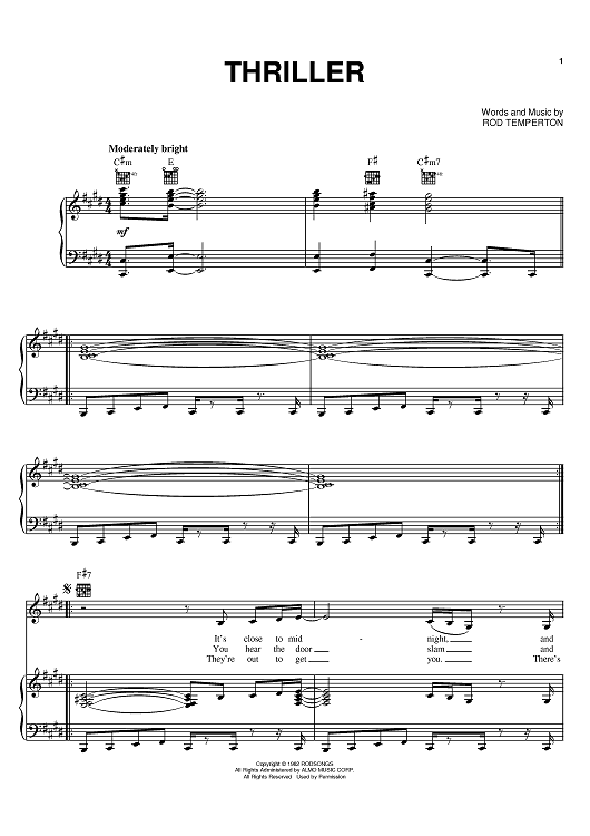 Digital Sheet Music for Thriller by Michael Jackson, Rod Temperton scored for Piano/Vocal/Chords; id:367507