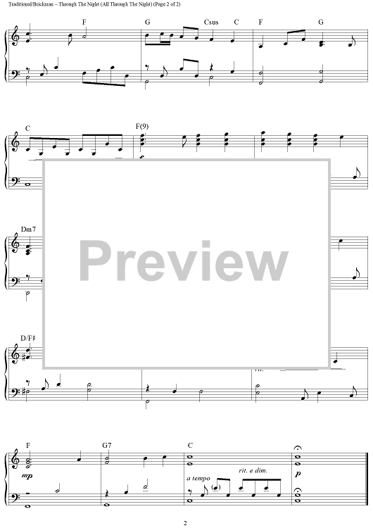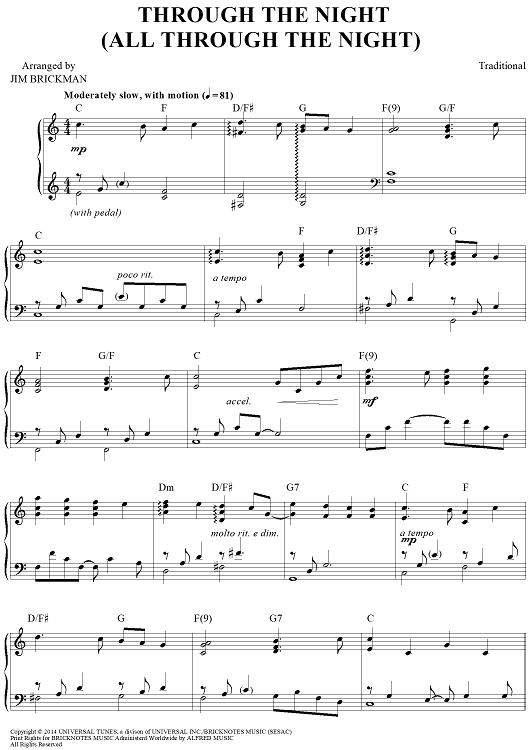 "Through the Night (All Through the Night)" Sheet Music by Traditional
