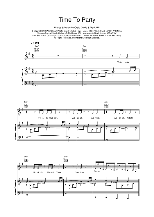 Digital Sheet Music for Time To Party by Craig David, Mark Hill scored for Piano/Vocal/Chords; id:377164