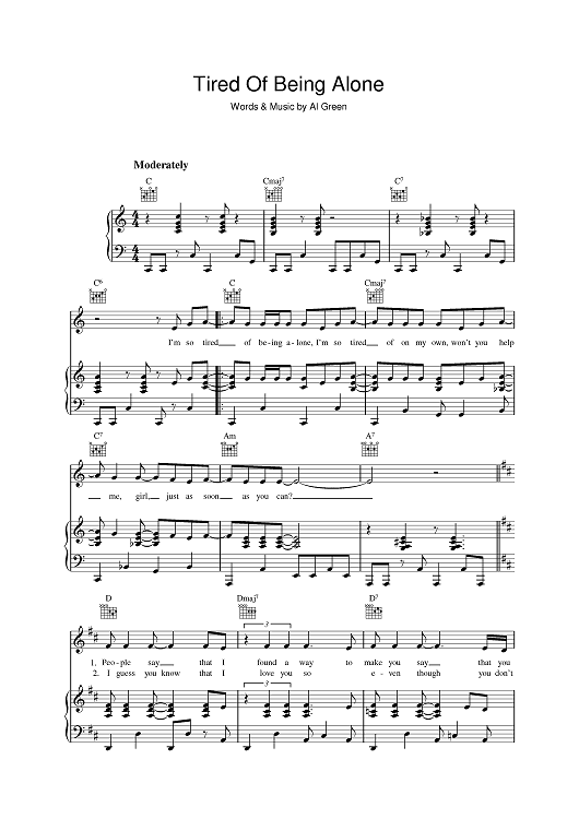 Digital Sheet Music for Tired Of Being Alone by Al Green scored for Piano/Vocal/Chords; id:398757