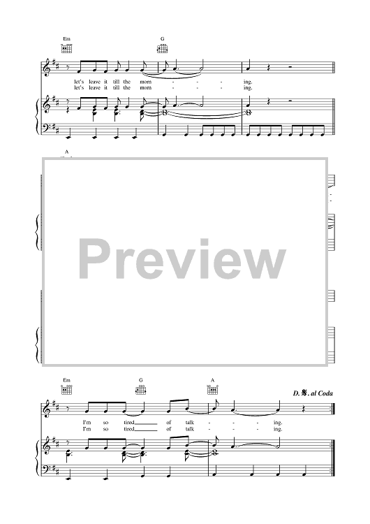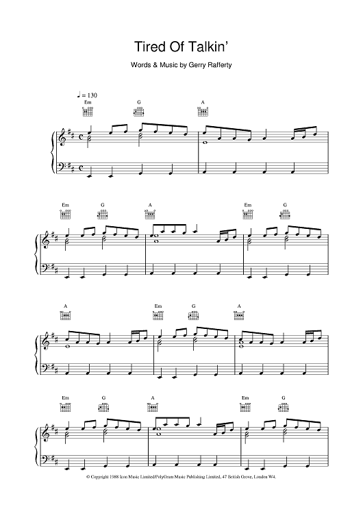 Digital Sheet Music for Tired Of Talkin' by Gerry Rafferty scored for Piano/Vocal/Chords; id:379701