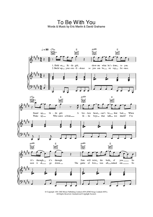 Digital Sheet Music for To Be With You by Westlife, David Grahame, Eric Martin, Mr. Big scored for Piano/Vocal/Chords; id:378414