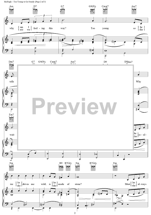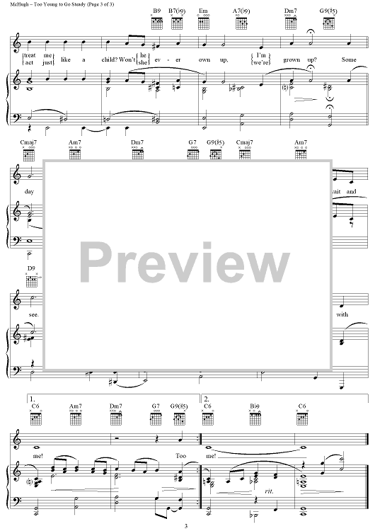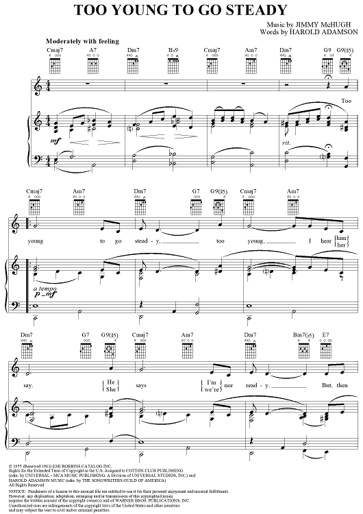 Digital Sheet Music for Too Young to Go Steady by Jimmy McHugh, Harold Adamson scored for Piano/Vocal/Chords; id:287361