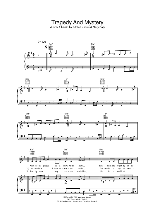 Digital Sheet Music for Tragedy And Mystery by China Crisis, Gary Daly, Eddie Lundon scored for Piano/Vocal/Chords; id:401203