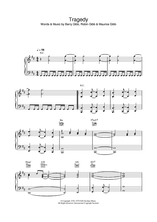 Digital Sheet Music for Tragedy by Bee Gees, Maurice Gibb, Barry Gibb, Robin Gibb scored for Piano/Vocal/Chords; id:375647