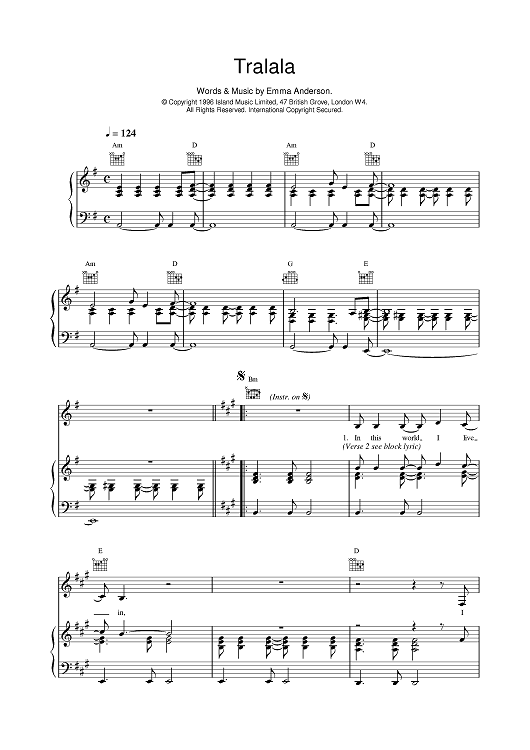 Digital Sheet Music for Tralala by Lush scored for Piano/Vocal/Chords; id:376171