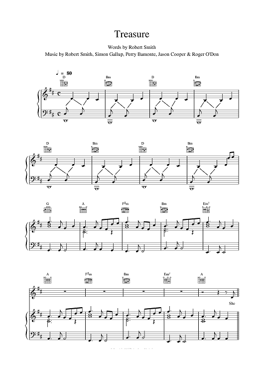 Digital Sheet Music for Treasure by The Cure scored for Piano/Vocal/Chords; id:376472