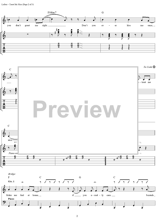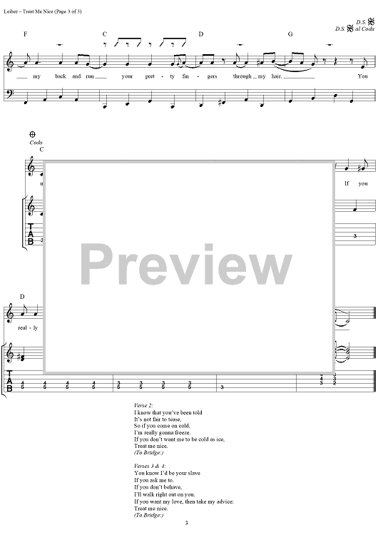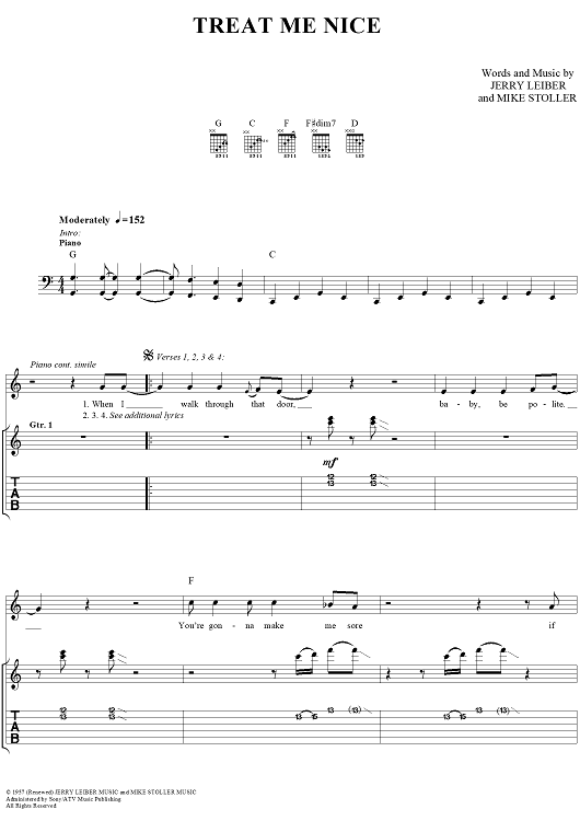 Digital Sheet Music for Treat Me Nice by Elvis Presley, Jerry Leiber, Mike Stoller, Kenn Chipkin scored for Guitar Tab/Vocal/Chords; id:113572