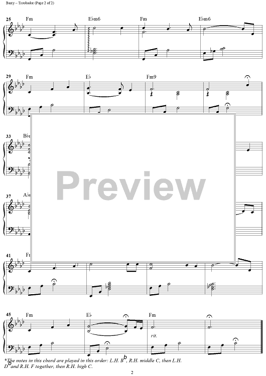 "Troubador (from the solo piano album FOREST)" Sheet Music by John Barry