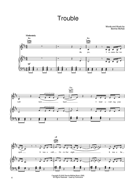 Digital Sheet Music for Trouble by Bonnie McKee scored for Piano/Vocal/Chords; id:381174