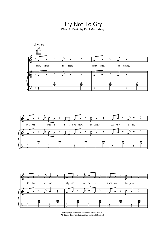 Digital Sheet Music for Try Not To Cry by Paul McCartney scored for Piano/Vocal/Chords; id:390330