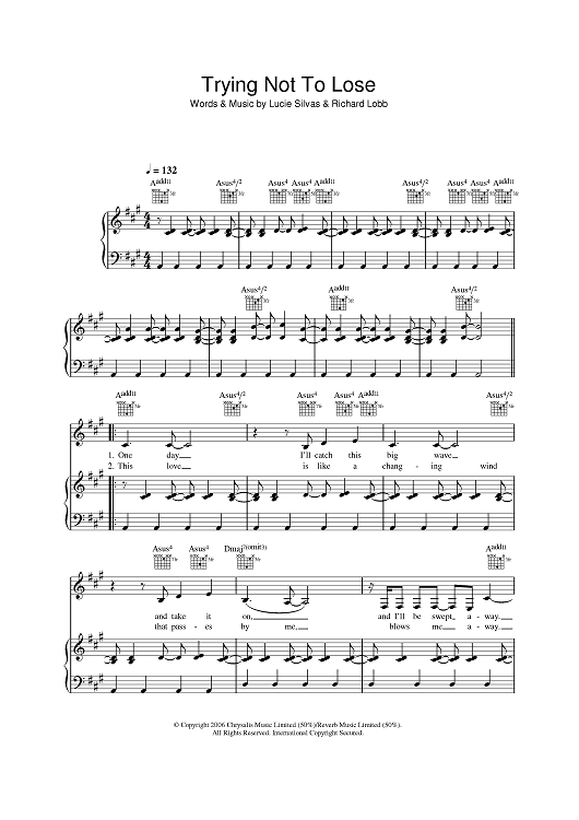 Digital Sheet Music for Trying Not To Lose by Richard Lobb, Lucie Silvas scored for Piano/Vocal/Chords; id:397018