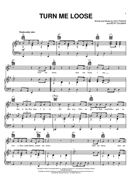 Digital Sheet Music for Turn Me Loose by Doc Pomus, Mort Shuman, Fabian scored for Piano/Vocal/Chords; id:381789