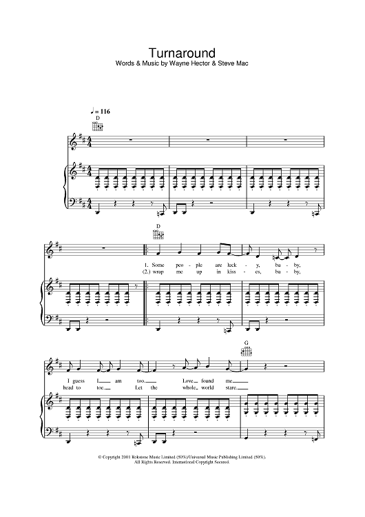 Digital Sheet Music for Turnaround by Westlife scored for Piano/Vocal/Chords; id:378434
