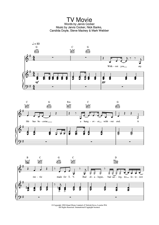 Digital Sheet Music for TV Movie by Pulp scored for Piano/Vocal/Chords; id:376668