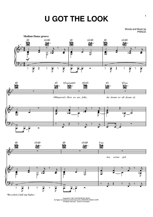 Digital Sheet Music for U Got The Look by Prince scored for Piano/Vocal/Chords; id:398367