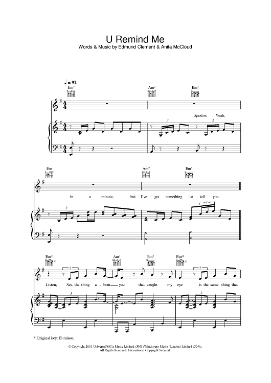 Digital Sheet Music for U Remind Me by Usher scored for Piano/Vocal/Chords; id:378419
