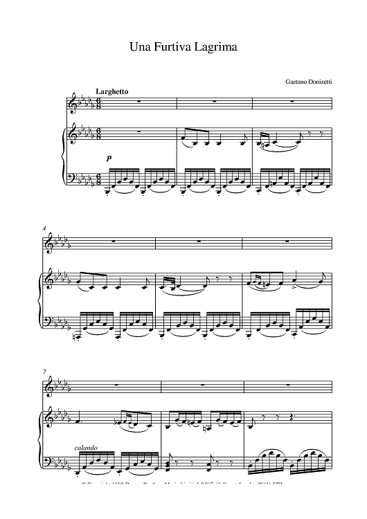 "Una Furtiva Lagrima" Sheet Music by Gaetano Donizetti