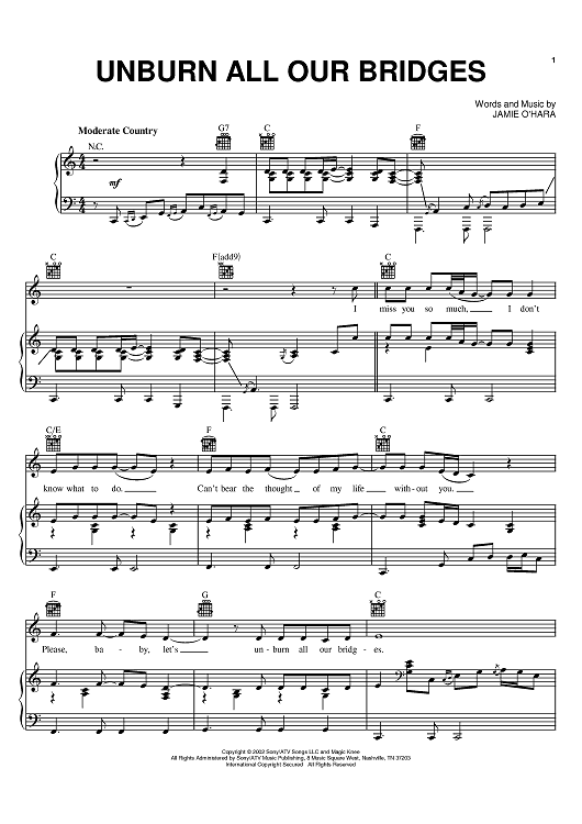 Digital Sheet Music for Unburn All Our Bridges by Jamie O'Hara, Josh Turner scored for Piano/Vocal/Chords; id:374575