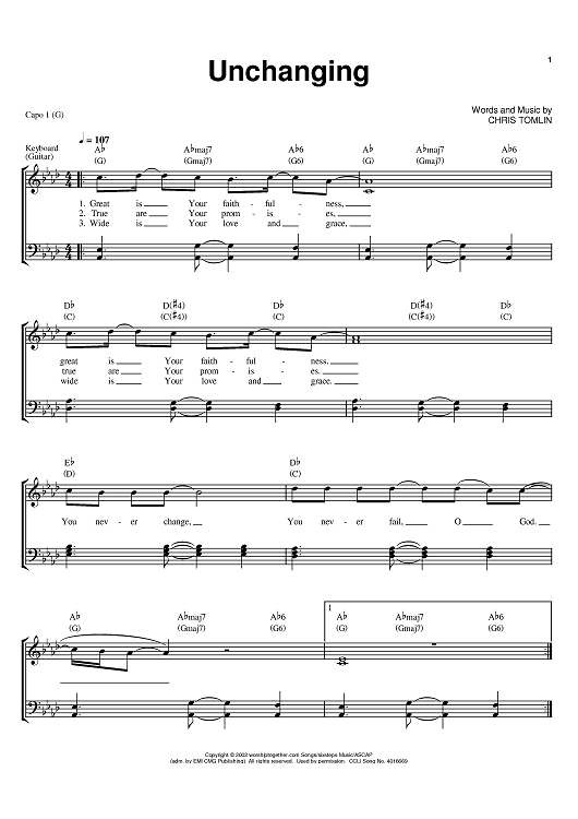 Digital Sheet Music for Unchanging by Chris Tomlin scored for Piano/Vocal/Chords; id:393781
