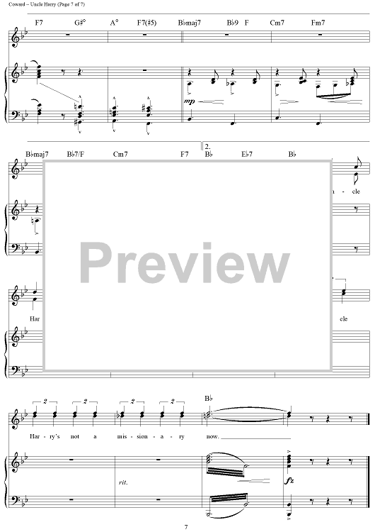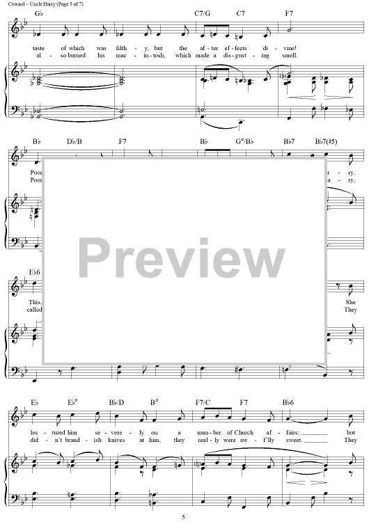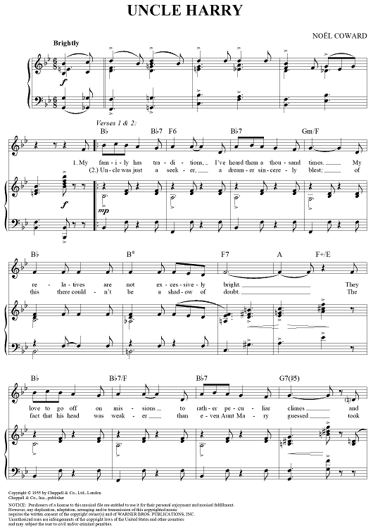 Digital Sheet Music for Uncle Harry by Noel Coward scored for Piano/Vocal/Chords; id:357040