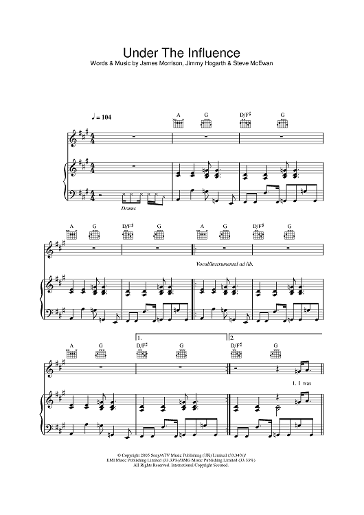 Digital Sheet Music for Under The Influence by Steve McEwan, James Morrison, Jimmy Hogarth scored for Piano/Vocal/Chords; id:393647