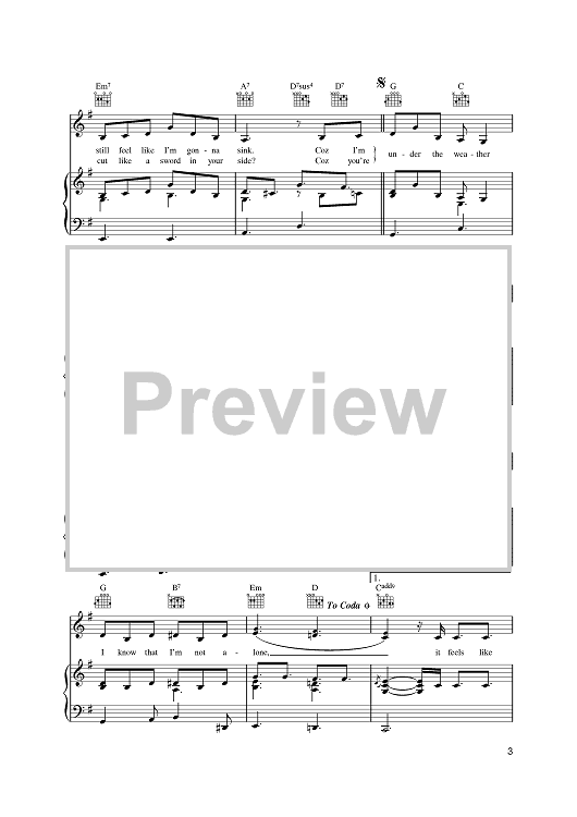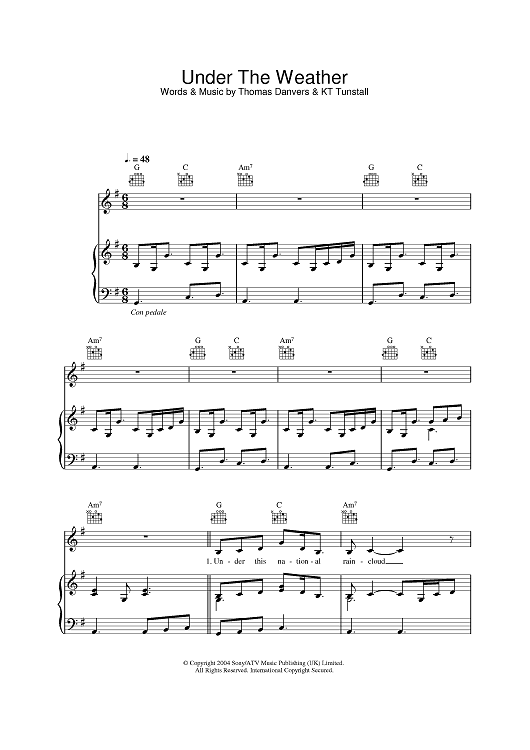 Digital Sheet Music for Under The Weather by KT Tunstall, Tommy Danvers scored for Piano/Vocal/Chords; id:385345