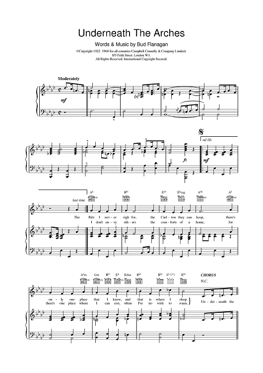 "Underneath The Arches" Sheet Music by Bud Flanagan