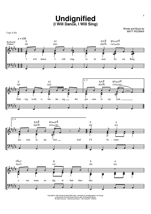 Digital Sheet Music for Undignified by Matt Redman, David Crowder scored for Piano/Vocal/Chords; id:393787
