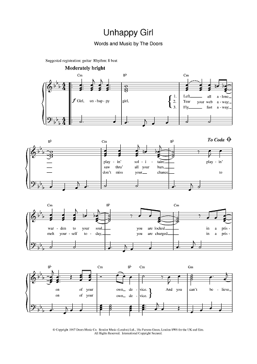 "Unhappy Girl" Sheet Music by The Doors