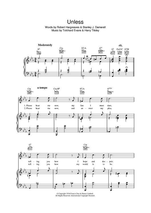 Digital Sheet Music for Unless by Stanley J. Damerell, Tolchard Evans, Robert Hargreaves, Harry Tilsley scored for Piano/Vocal/Chords; id:402200
