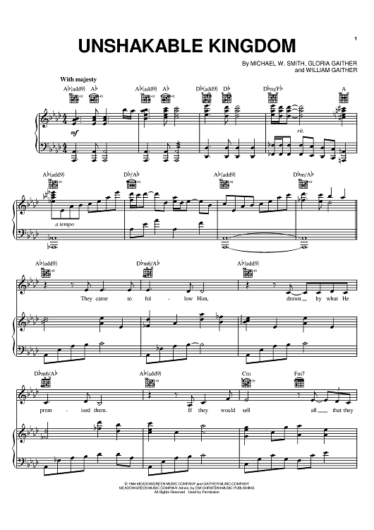 Digital Sheet Music for Unshakable Kingdom by Michael W. Smith, Gloria Gaither, Bill Gaither scored for Piano/Vocal/Chords; id:386461