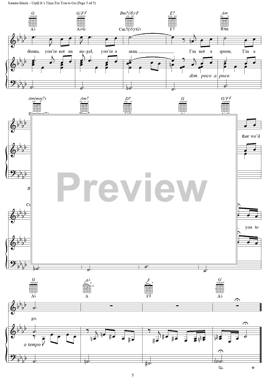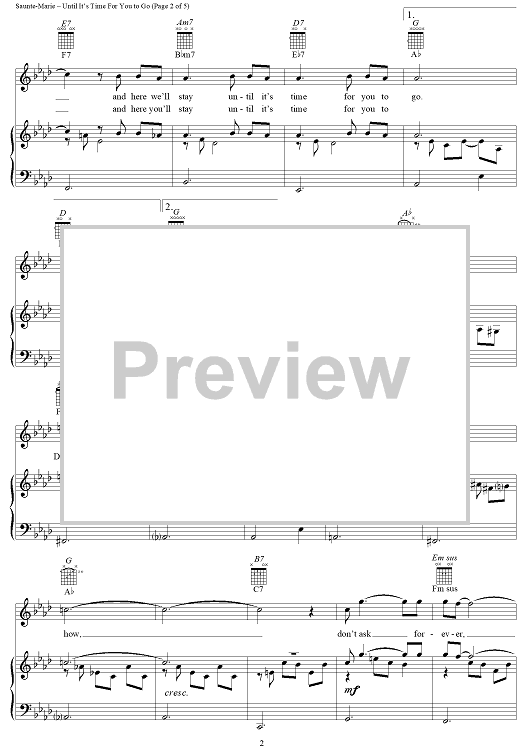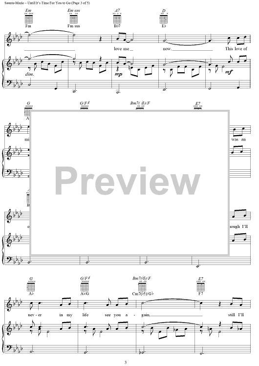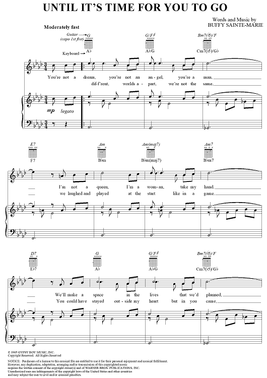Digital Sheet Music for Until It's Time for You to Go by Buffy Sainte-Marie scored for Piano/Vocal/Chords; id:256336