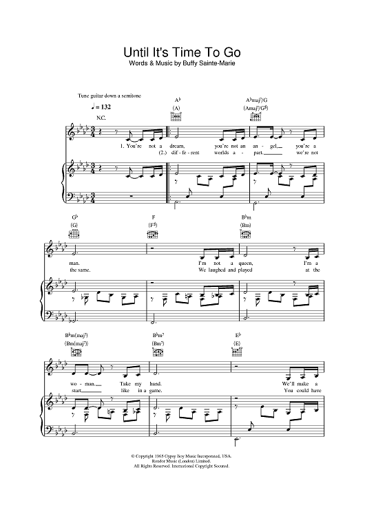 Digital Sheet Music for Until It's Time For You To Go by Buffy Sainte-Marie scored for Piano/Vocal/Chords; id:388352