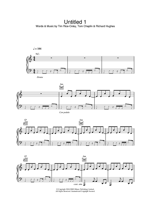 Digital Sheet Music for Untitled 1 by Keane scored for Piano/Vocal/Chords; id:378462