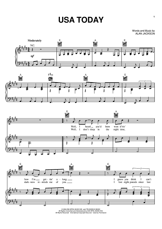 Digital Sheet Music for USA Today by Al Jackson Jr scored for Piano/Vocal/Chords; id:380978