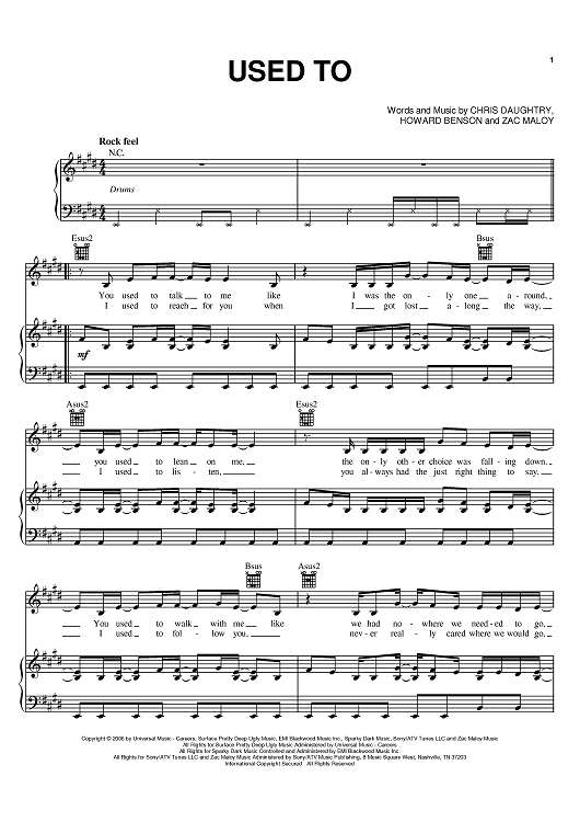 Digital Sheet Music for Used To by Chris Daughtry, Daughtry, Howard Benson, Zac Maloy scored for Piano/Vocal/Chords; id:401151