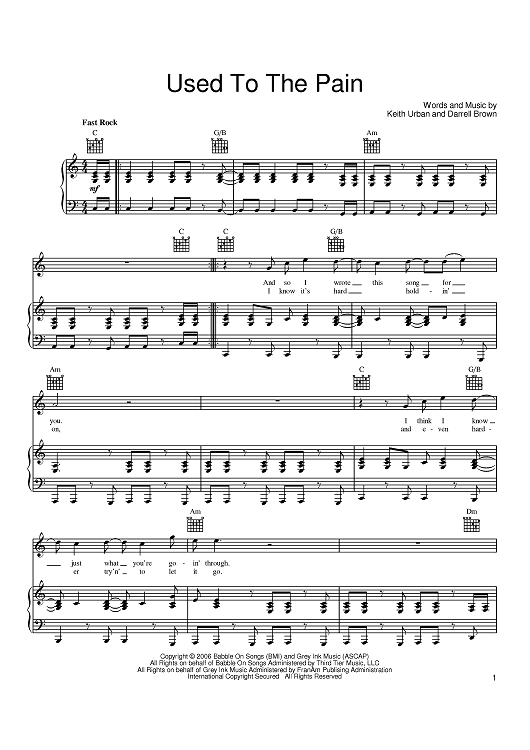 Digital Sheet Music for Used To The Pain by Darrell Brown, Keith Urban scored for Piano/Vocal/Chords; id:402466