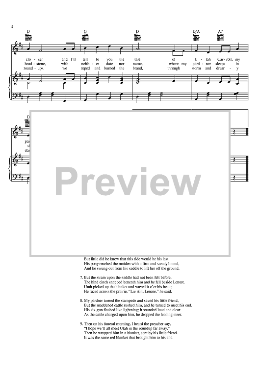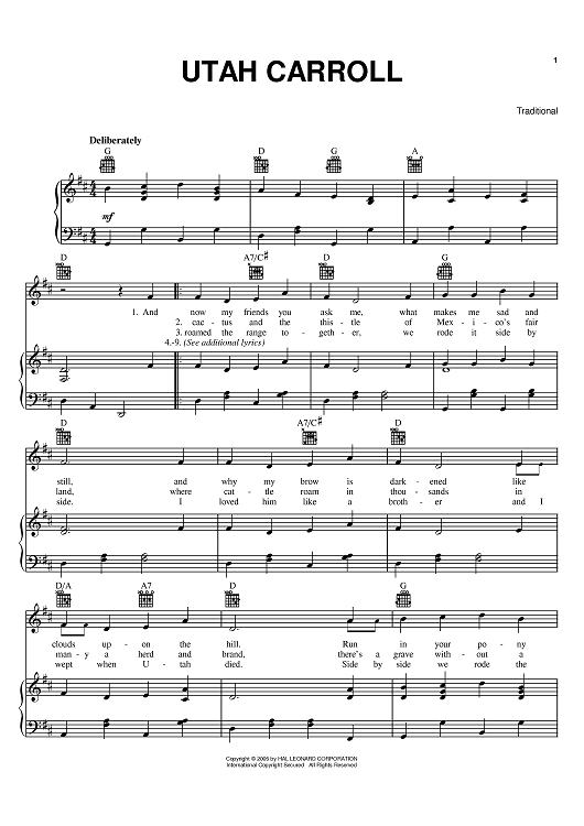 Digital Sheet Music for Utah Carroll by Don Edwards scored for Piano/Vocal/Chords; id:381367