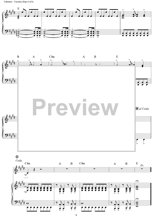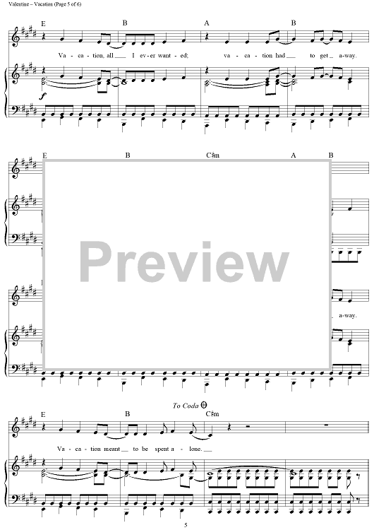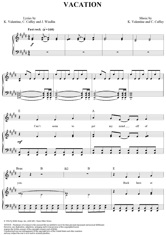 Digital Sheet Music for Vacation by Charlotte Caffey, Jane Wiedlin, Karen Valentine, The Go-Go's scored for Piano/Vocal/Chords; id:321134