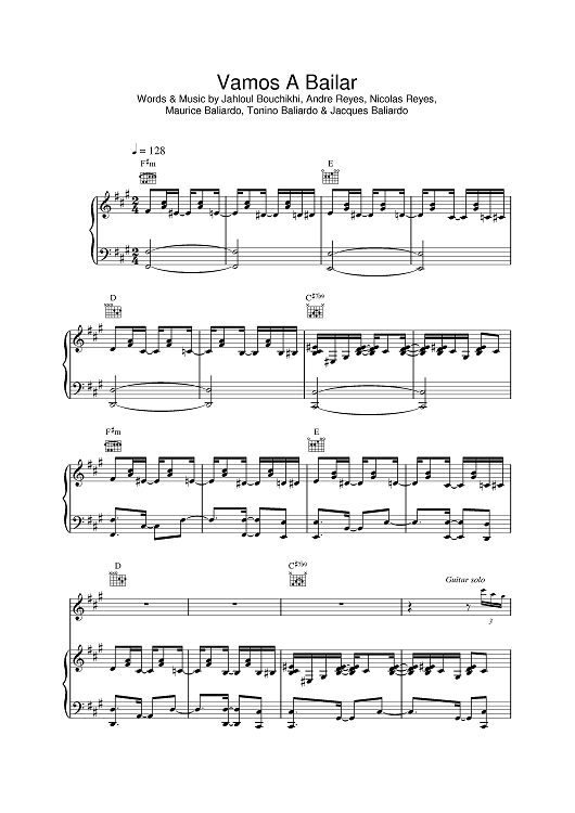 Digital Sheet Music for Vamos A Bailar by Jacques Baliardo, Maurice Baliardo, Tonino Baliardo, Jahloul Bouchikhi, Gipsy Kings, Andre Reyes, Nicolas Reyes scored for Piano/Vocal/Chords; id:395847