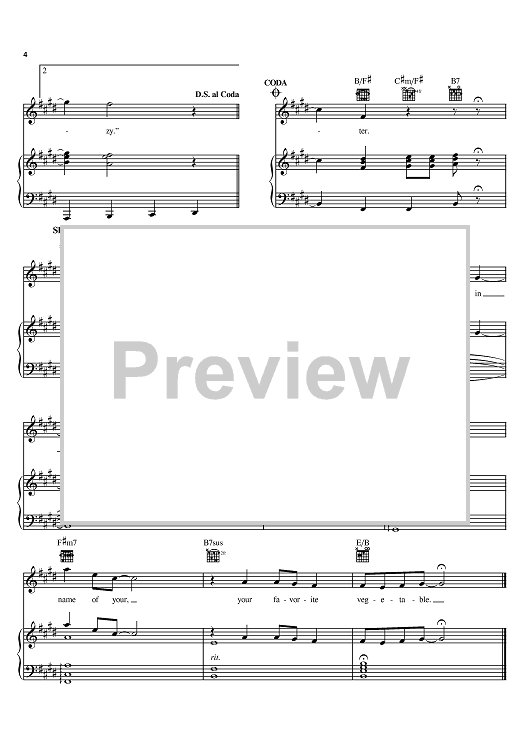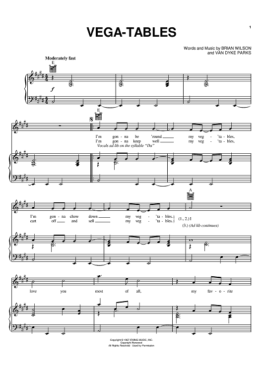Digital Sheet Music for Vega-Tables by Brian Wilson, Van Dyke Parks scored for Piano/Vocal/Chords; id:382251