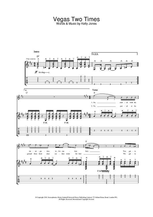 Digital Sheet Music for Vegas Two Times by Stereophonics scored for Piano/Vocal/Chords; id:377257
