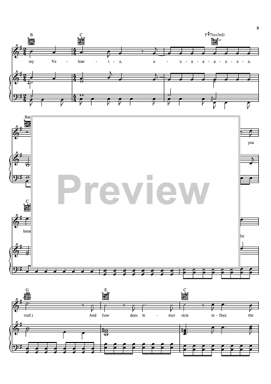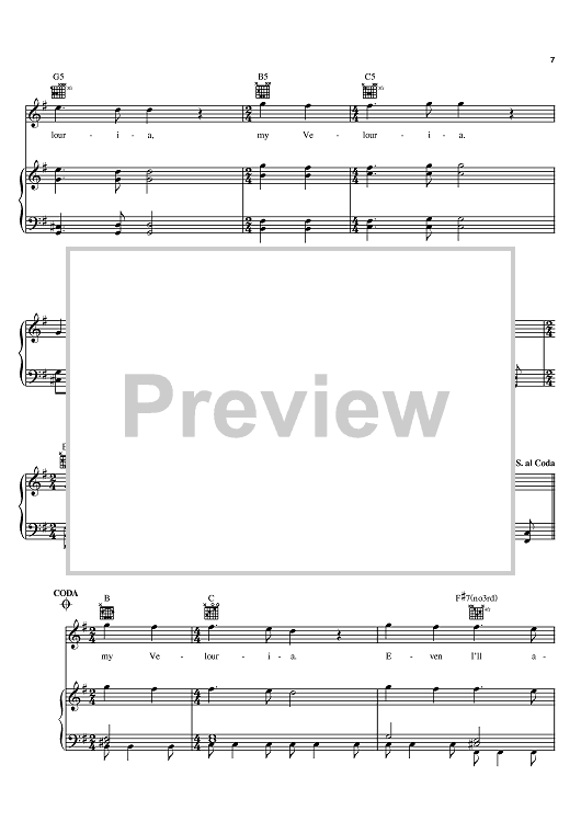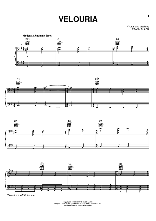 Digital Sheet Music for Velouria by Frank Black, Pixies scored for Piano/Vocal/Chords; id:396718