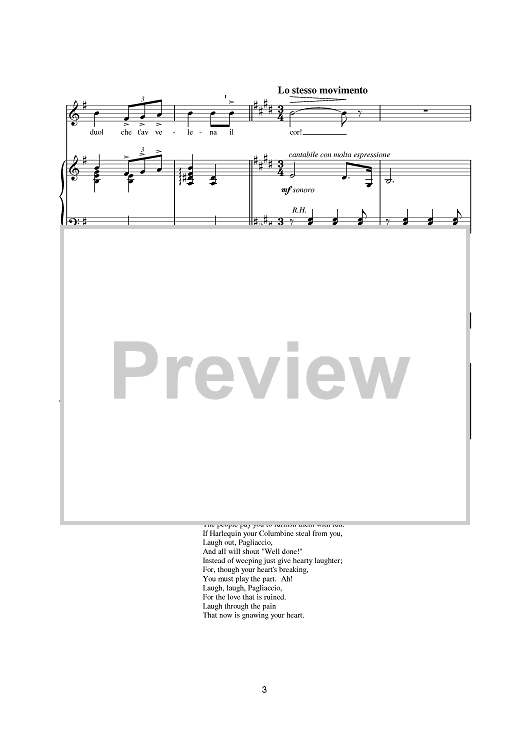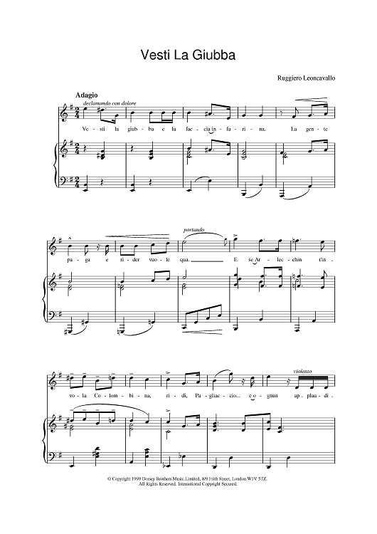 "Vesti La Giubba" Sheet Music by Ruggero Leoncavallo