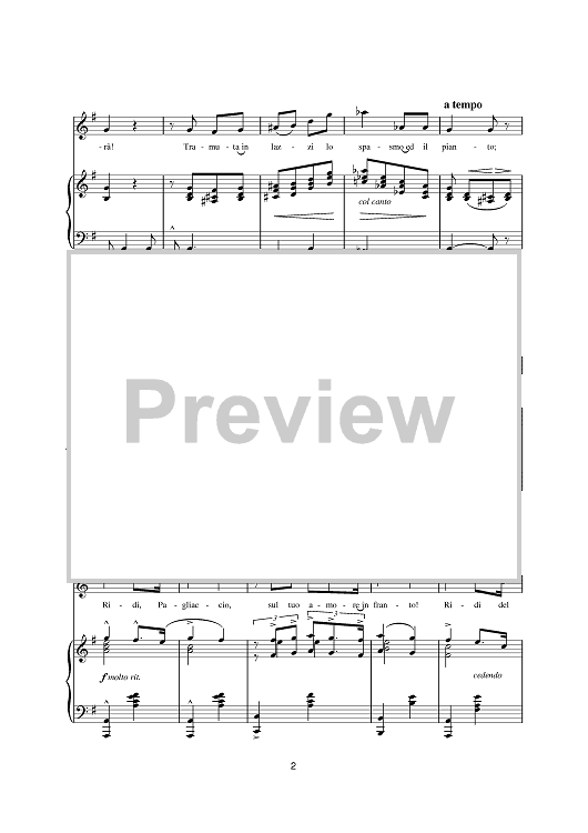 Digital Sheet Music for Vesti La Giubba by Ruggero Leoncavallo scored for Piano/Vocal/Chords; id:382701